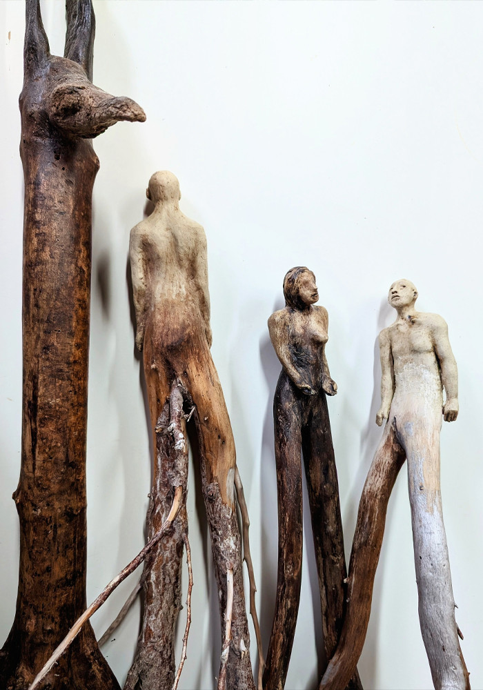 L’artiste vous invite à renouer avec le monde naturel et à découvrir le potentiel initiatique de la forêt à travers des sculptures réalisées à partir de branches et d'éléments en céramique.