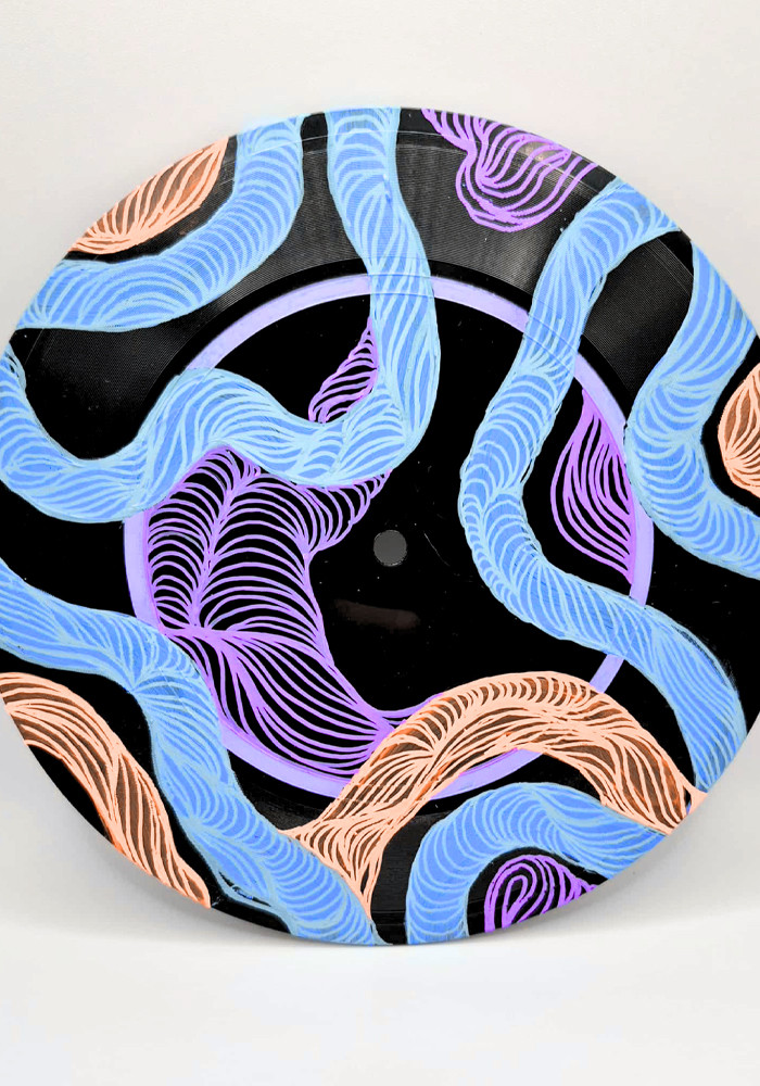 Grâce à ce support peu traditionnel, tu expérimenteras diverses techniques de peinture, telles que la composition circulaire, la superposition des couches, les effets de textures et le geste pictural.