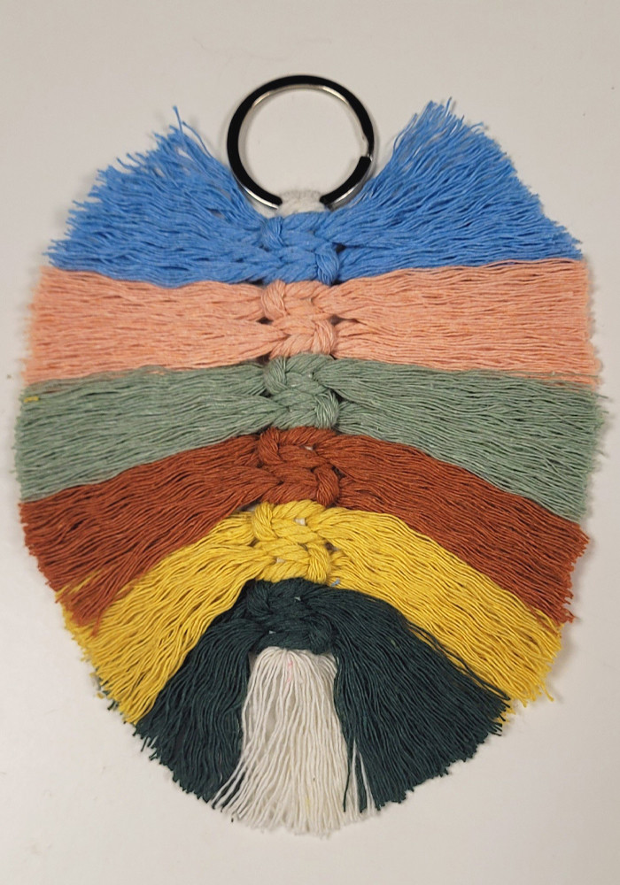 Découvrez la technique de base du macramé en confectionnant un porte-clé en forme de feuille lors de l'atelier qui se tiendra le samedi 21 mars de 13 h 30 à 15 h à la bibliothèque « Le Survenant » (145, rue George).