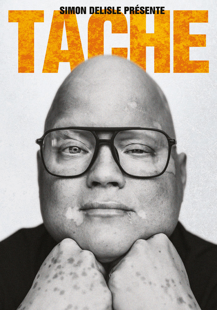 À travers le regard unique qu’il porte sur la vie et le monde, avec son humour percutant et rempli d’images puissantes, Simon Delisle s’y révélera sans filtre, abordant la large notion de « tache » de diverses façons… D’abord, au premier degré: son apparence atypique, sa trajectoire particulière et, littéralement, ses taches (vitiligo). Bref, tout ce qu’il a dû développer comme aptitudes pour ne pas être celui de qui on rit, mais celui qui fait rire! Il jasera d’autodérision et de résilience, des forces qui, aussi nobles soient-elles, viennent parfois avec leur part de noirceur… Au niveau plus figuré, on en apprendra davantage sur ces gens, ces « taches », qui ont ralenti son parcours par leur manque d’ouverture, par les raccourcis simplistes… Enfin, il y a les marques, les « taches », que la vie laisse sur chacun, abordant les thèmes du doute, des remises en question et des épreuves.